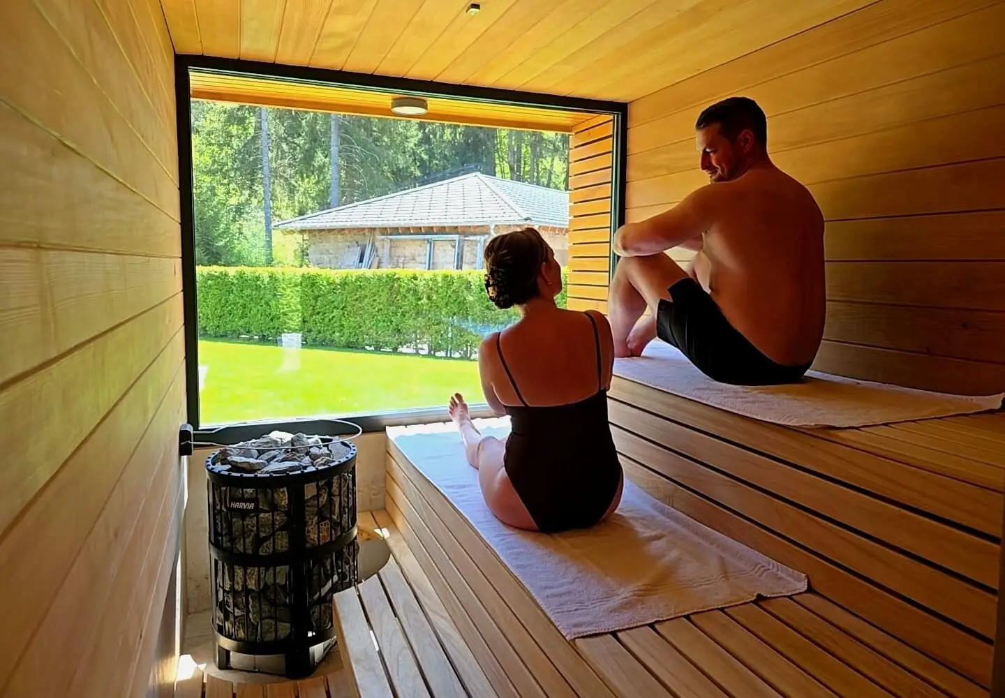 In Ihrem exklusiven Ferienblockhaus erwarten Sie drei stilvoll ausgestattete Badezimmer, eine großzügige Panoramasauna sowie ein moderner Outdoor-Whirlpool für bis zu fünf Personen – perfekt für entspannte Stunden zu zweit oder mit der ganzen Familie.